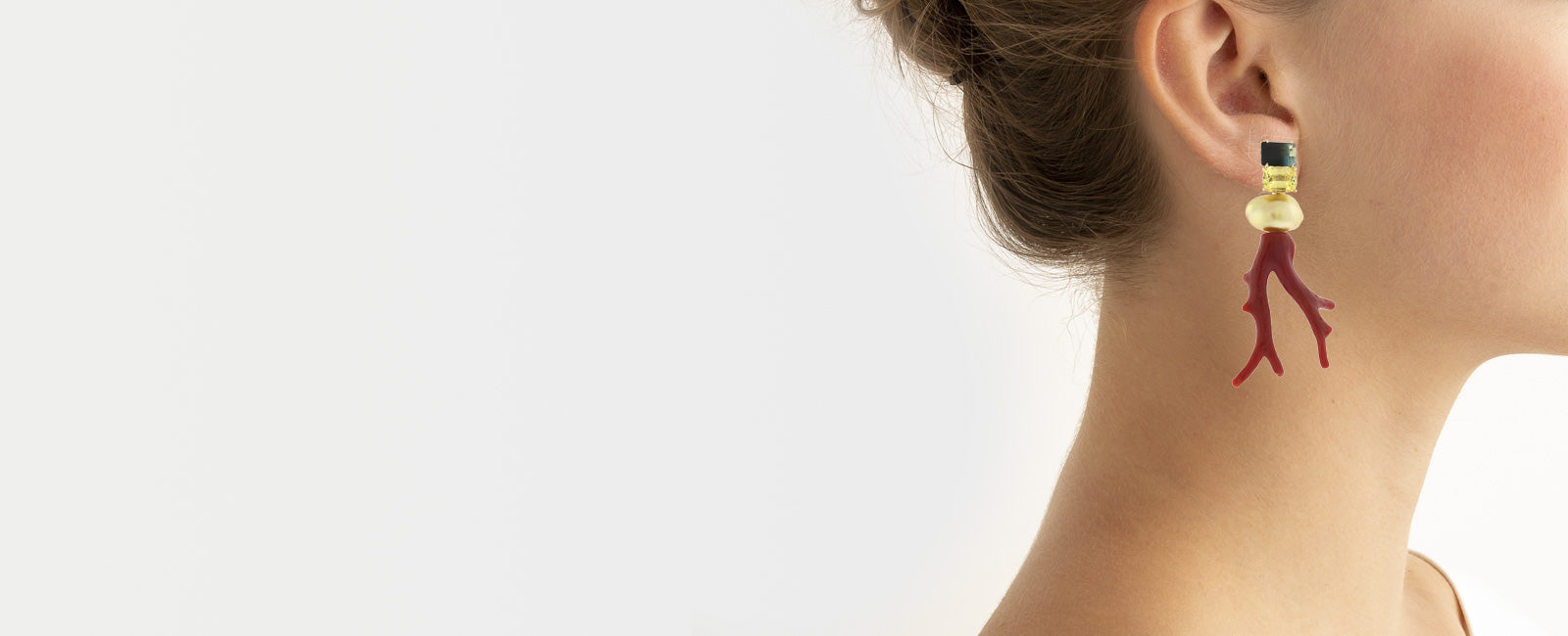 DetailsCoral, sapphire, tourmaline and pearl earrings