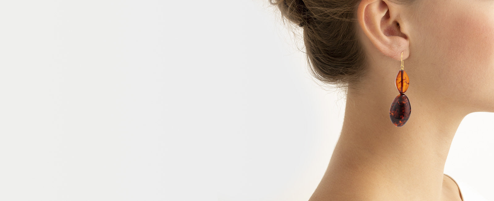 The warm brown glow of these earrings is surprisingly flattering and elegant against the face. They are not bright but they are soft and sensual. Wear these with a sweater, or linen for sporty chic. The length makes them more bold.