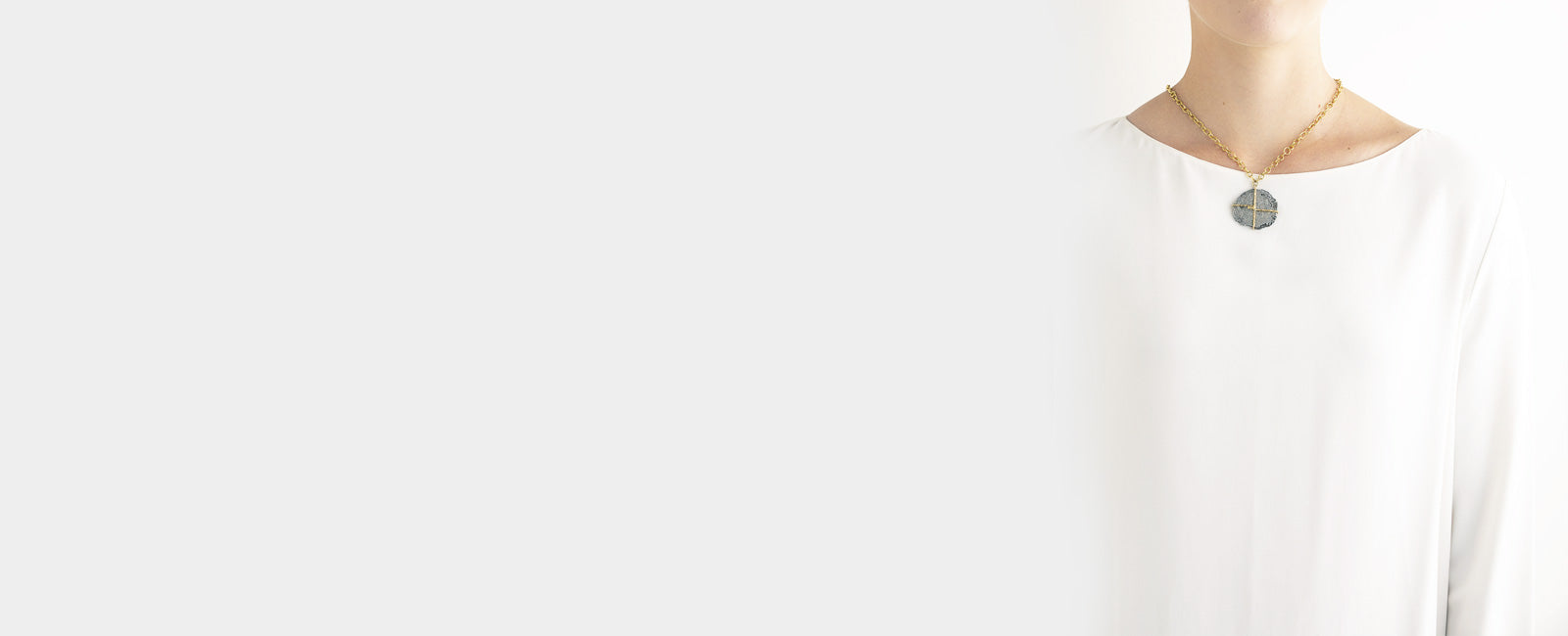 The coin is an actual Piece of Eight minted in 1590 in Peru. It was recently recovered from a Spanish galleon sunk in the Yucatan. The cain is hand wrought gold to underscore the drama of the coin. It is wonderful piece of history , but it is beautiful as well. The coin can be worn with either face forward and the colors of the silver the gold and the black tarnish are a classic and elegant combination. The length should be adjust for the owner of this piece…either long or short, almost choker length. It is an interstice and tough-looking piece of jewelry, sporty and chic…great with a bathing suit.