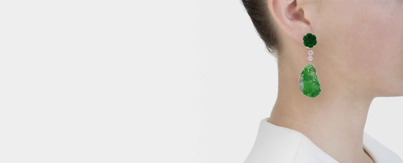 The florettes and the drops are antiques which I purchased separately and reworked into this modern setting. The inspiration is Cartier’s wonderful jade and enamel jewelry of the 1920’s. The earrings are perfect for summer dressing, but can be an understated accent with winter black.