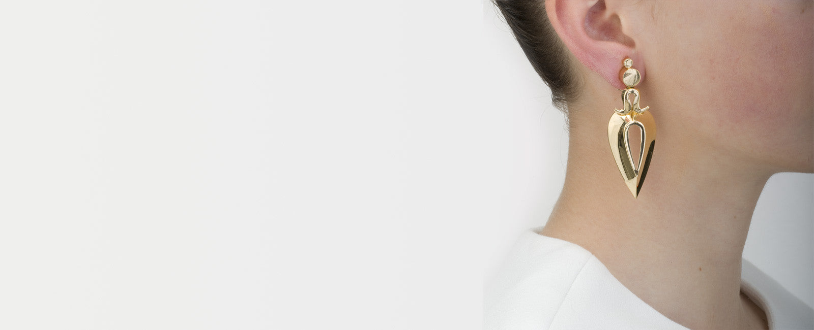 The Greeks used myrtle seed shapes in their jewelry to symbolize love, life, and the goddess of love, Aphrodite. Highly sculptural, the circles clip at the top and have one link for limited movement. Made of thick polished 18k gold, they are elegant and timeless.