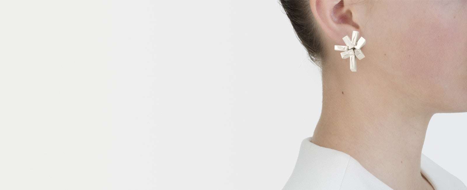 Frozen in time, these clip earrings capture the moment of the burst of a firecracker in geometric form. The bright finish reflects the colors around and frame the face in their burst.