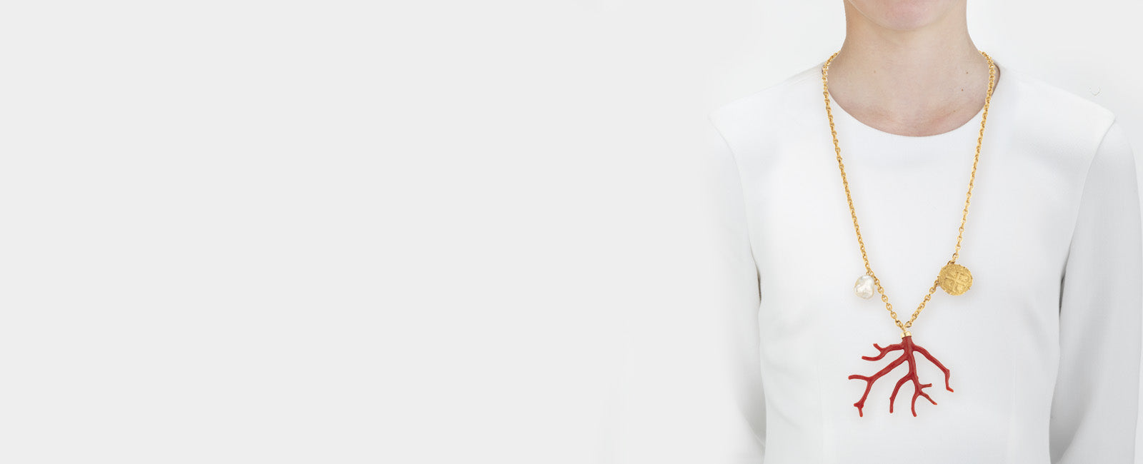 Gold coin, coral and pearl necklace
